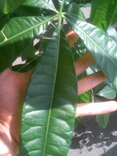 うちのパキラはどこまでも伸びる!?天井にも届く気がするな〜頂点を目指せ!(笑)一枚目の画像は新しい葉っぱ〜かわいい♪二枚目の画像の葉っぱは、うちに来たときからの子。3枚目は、アノ水とアノ○とアノ○○をあげつづけて、さらに【毎日が大笑い】の環境で育った子。人も同じ。なるべくいい環境に身を置くこと。byパキラ社長